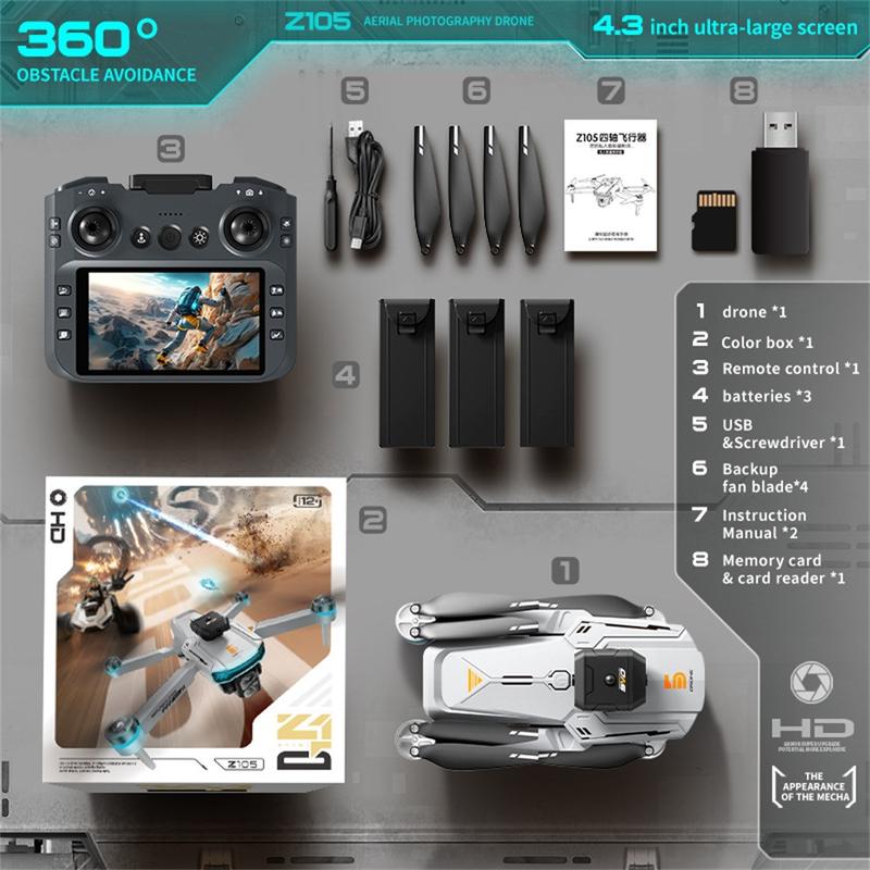 Z105 Dual-Kamera Smart Drone mit 4.3" Display Controller & 3 Akkus - Bürstenloser Motor Hindernisvermeidung Quadcopter