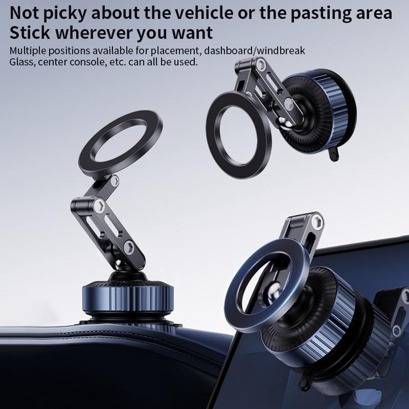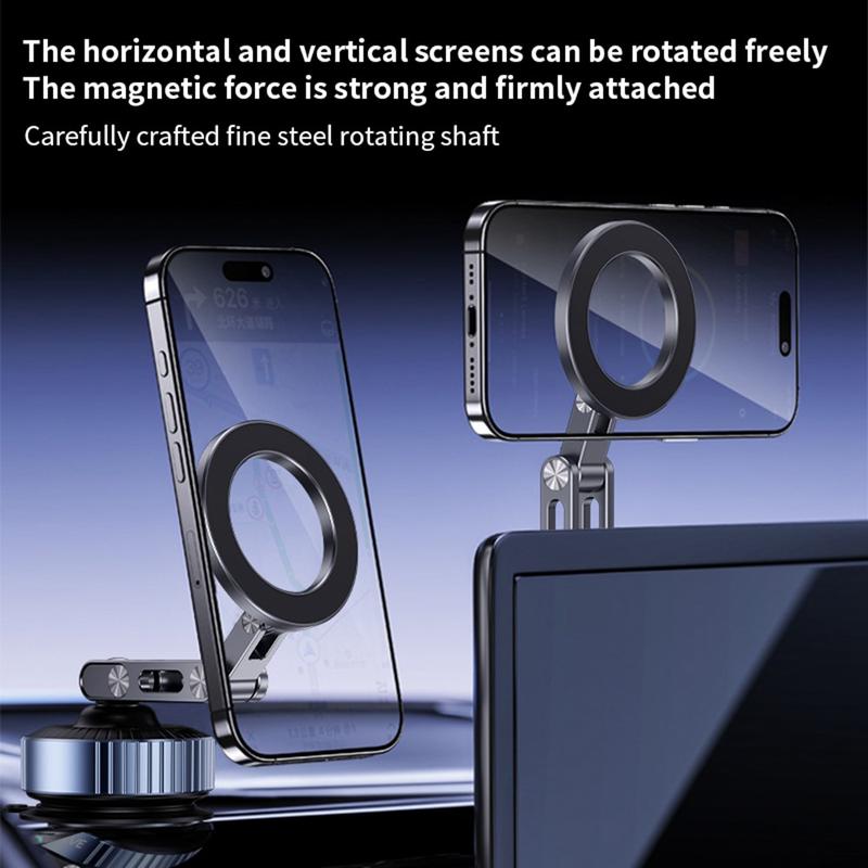 Eine schlanke, faltbare Halterung für das Armaturenbrett, die Ihr Telefon mit N52-Magneten und Vakuumansaugung fixiert. Genießen Sie das Andocken mit einer Hand, wackelfreie Stabilität und eine klare Sicht, egal ob Sie unterwegs navigieren, telefonieren oder Musik streamen.