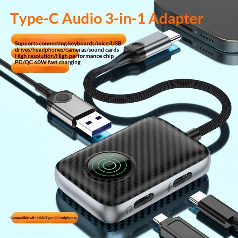 ZC4339 3-in-1-USB-C-OTG-Adapter/Hub – USB 3.0-Daten, USB-C-Audio/Daten und 60 W PD-Schnellladung