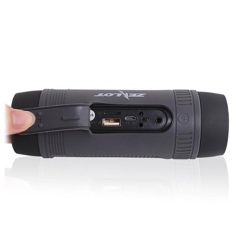 Der drahtlose Lautsprecher Zealot S1 ist außerdem mit einem Freisprechmikrofon ausgestattet, mit dem Sie Anrufe annehmen können, ohne anhalten zu müssen. Die LED-Taschenlampe verfügt über drei verschiedene Beleuchtungsmodi und unterstützt auch das Lesen von MicroSD/TF-Karten (nicht im Lieferumfang enthalten), was sie zu einem äußerst praktischen und nützlichen Gerät macht.