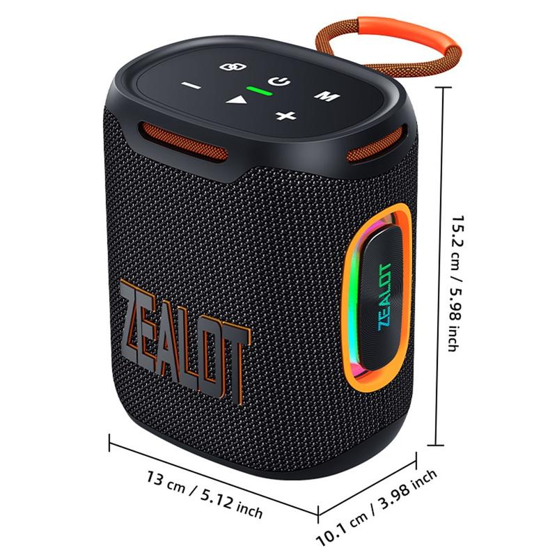Erhöhen Sie Ihr Audioerlebnis mit dem tragbaren Bluetooth-Lautsprecher ZEALOT S122. Dieser Lautsprecher wurde für Musikliebhaber entwickelt und kombiniert leistungsstarken Sound, fortschrittliche Konnektivität und dynamische Beleuchtung, um jede Umgebung aufzuwerten.