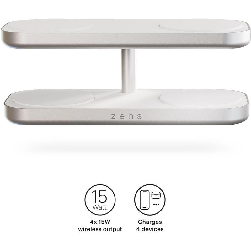 Zens Aluminium Quattro Wireless Charger Pro 4 mit 65W Power Adapter - MagSafe-kompatibel, Qi2