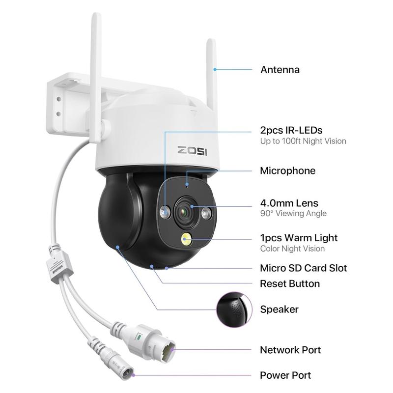 Sichern Sie größere Bereiche bei Tag und Nacht mit einer kompakten, wetterfesten Kamera. Die ZOSI C290SE kombiniert 4-Megapixel-Klarheit, vollständige PTZ-Steuerung, Nachtsicht in Farbe und integriertes Zwei-Wege-Audio - so können Sie von überall aus sehen, hören und sprechen.