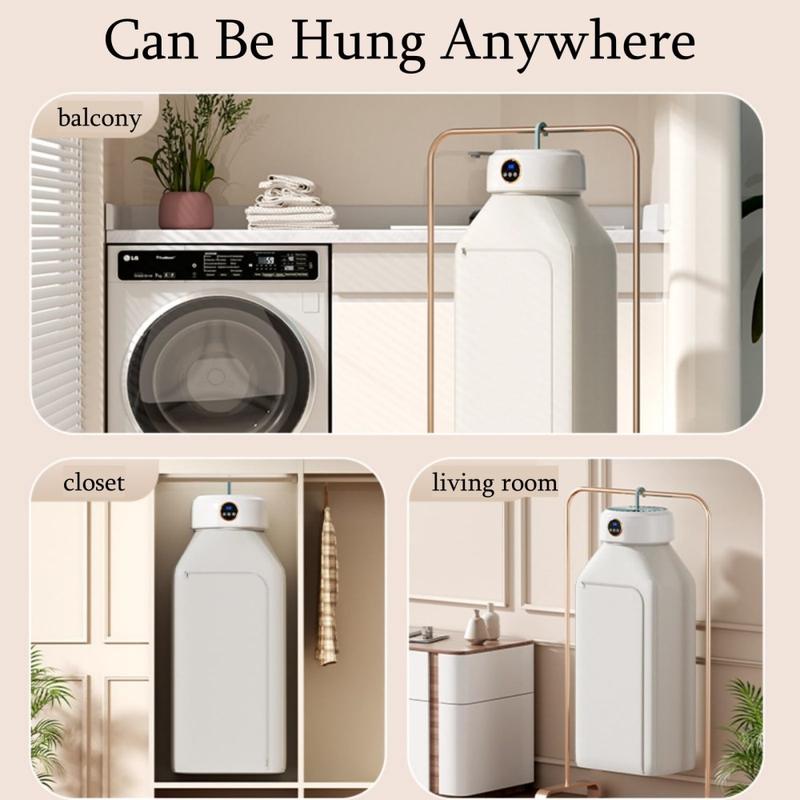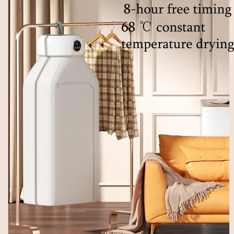 • Zusammenklappbarer Wäschetrockner mit 360° Umluft - 68°C Konstant-Temperatur-Trockner, bis zu 10 kg Fassungsvermögen, 8-Stunden-Timer, 600W, Design mit Aufhängehaken