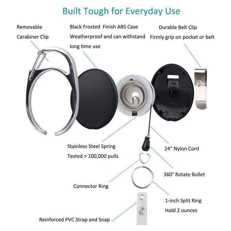 - Aufrollbare Rolle aus Zinklegierung mit 60 cm langer Nylonschnur für müheloses Tap-and-Go-Scannen